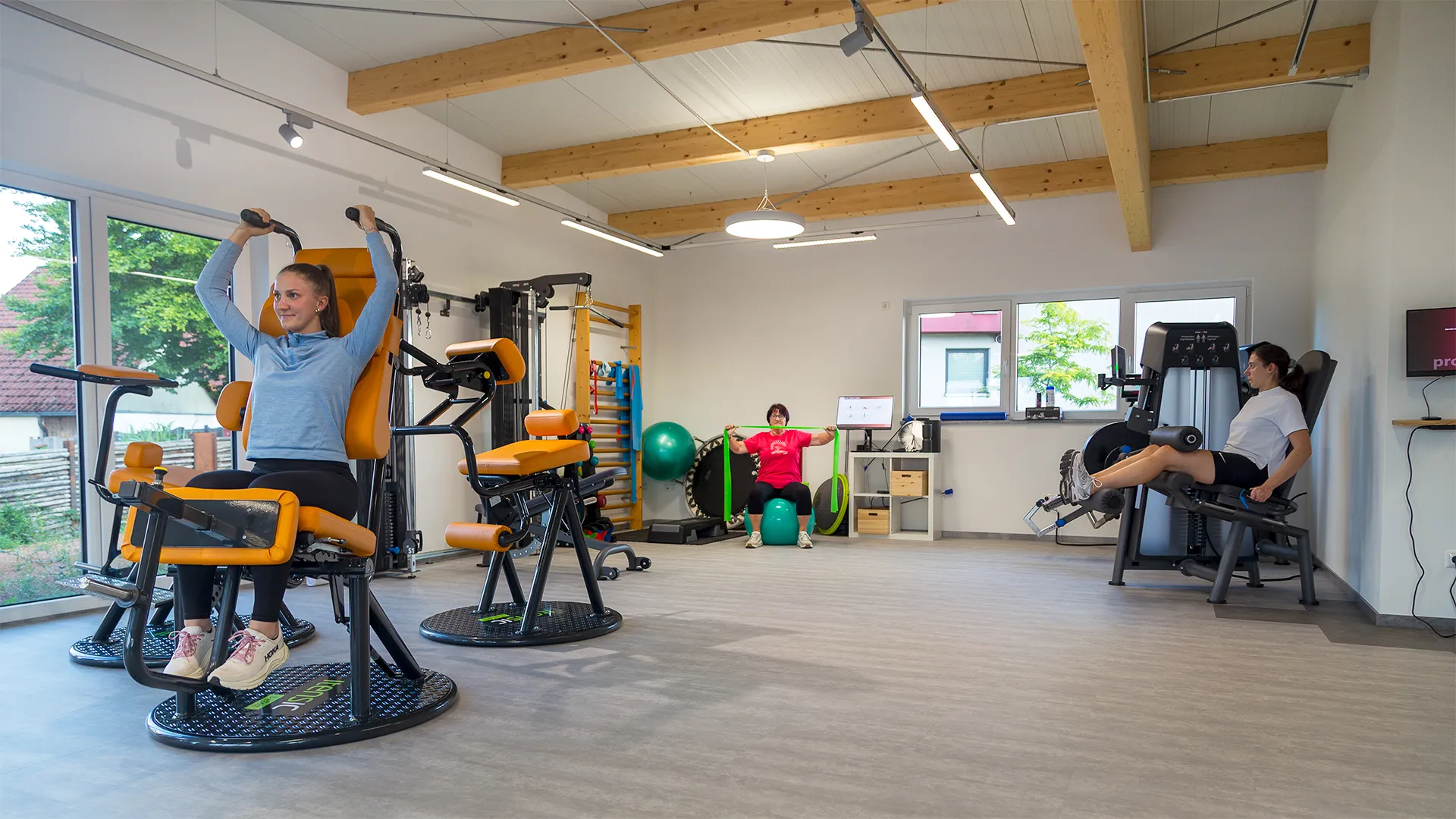 Der Fitnessraum ist hell und freundlich gestaltet, um eine motivierende Atmosphäre zu schaffen. Wir legen großen Wert auf Hygiene und Sicherheit, sodass Sie sich bei uns rundum wohlfühlen können. Egal, ob Sie an einer Verletzung arbeiten oder einfach Ihre Fitness steigern möchten – unser Fitnessraum bietet die idealen Voraussetzungen für Ihre Ziele. Wir freuen uns darauf, Sie bei Ihrem Weg zu mehr Gesundheit und Wohlbefinden zu unterstützen!